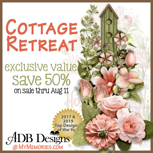 The Cottage Retreat Digital Scrapbook Collection is vintage, romantic and family-friendly. It's inspired by family, heritage and all things warm, cozy and country chic.